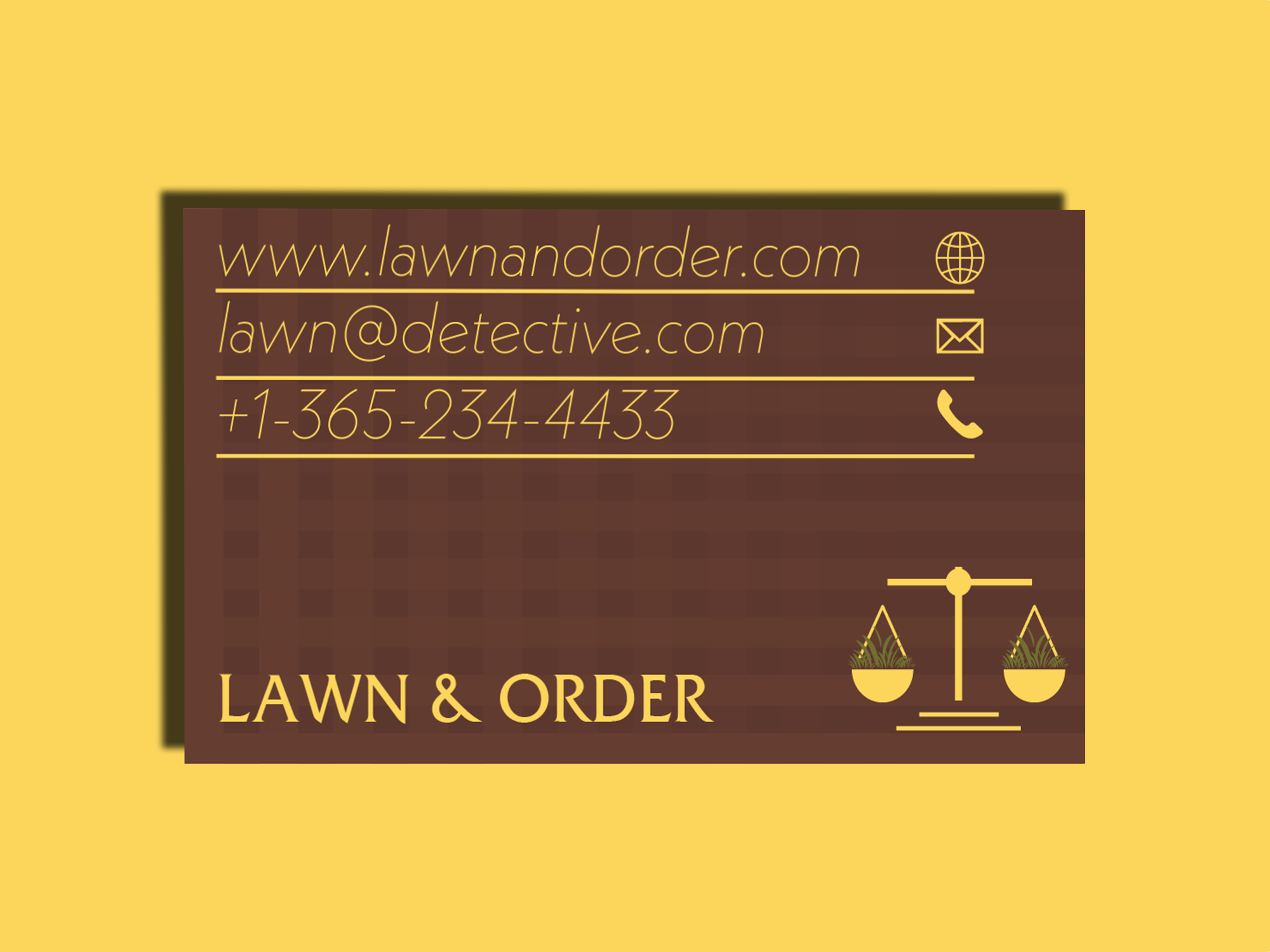 For LAWN & ORDER, I created a playful yet cohesive brand identity that blends the world of landscaping with the iconic visual cues of the well-known crime show. The goal was to represent the idea of restoring order to unruly lawns while building a memorable, humorous, and highly recognizable visual system.